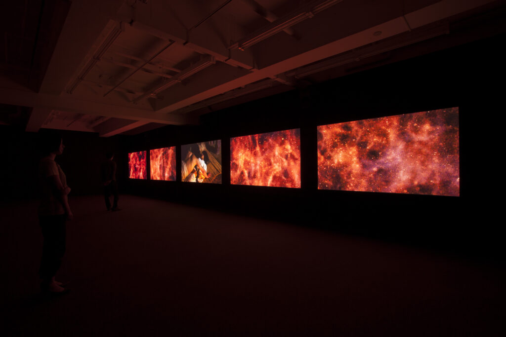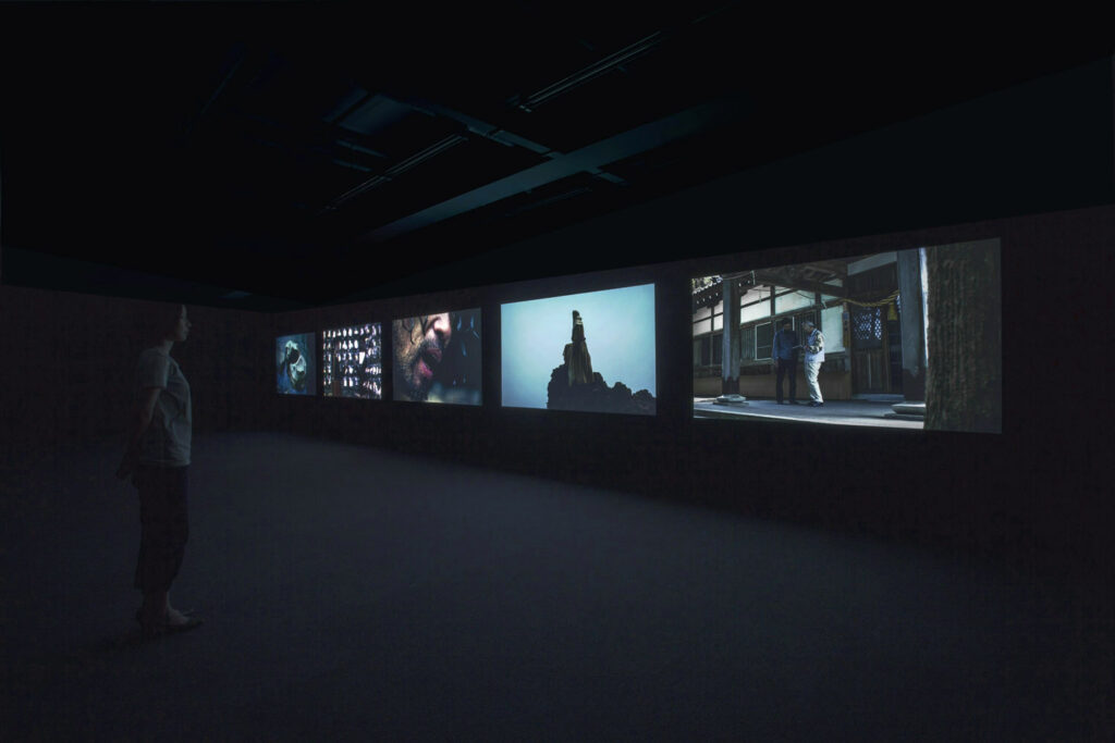 本作では、村西の語りや伝承、坂野自身のフィールドワークをもとに、古代から現代まで5つの異なる時間軸でそれぞれの物語が展開される。渡来してきた者たち、製鉄文化の伝播、神秘的な自然の変化など、5 つのスクリーンに映し出される物語は「現代/未来」に照応され、ときに呼応しながら進んでいく。豊かな自然に育まれ、また白山信仰のもと海と山を繋ぐ交易の街として栄えてきた鶴来。習わしや文化は受け継がれ、変容し、時を超えていく。その“息づかい”を感じ、営みの軌跡をたどることで、土地、人、時が交わり、重なり合う。それらが織りなす多層的な世界から聞こえてくる息づかいに、私たちは何を想像し、どのような物語を語り継いでいくのだろうか。