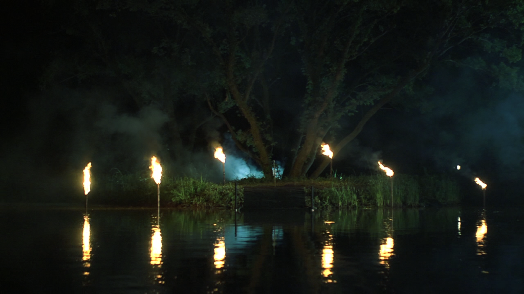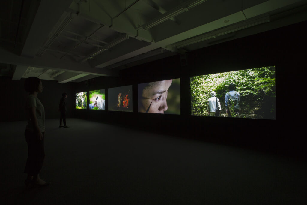 Having produced various projects upon the theme of the handing down of tradition since 2008, he has led back to his birthplace of Tsurugi, Hakusan city in Ishikawa Prefecture. Renovating a local rice store house into a studio and gathering a project team from Tsurugi and beyond, the result of 4 years’ work has culminated here in this project. The local festivals, customs, and culture which pervade everyday life;these elements which have come to saturate our very bodies, and have been naturally accepted – where have they come from? Starting from this question and reaching back into the past, it was during his search for memories of the shaping of the land’s culture that he encountered the researcher of folklore Hakuji Muranishi*, bringing a significant impact upon Sakano’s creative practice. The stories of this local folklore “researcher” reach beyond Tsurugi to encompass the myths of the whole of Japan, tales of the roots of settlers from overseas, a grand “fiction” taking on a history of several thousand years. This work, based upon the tales of Muranishi, folklore legends and personal fieldwork, develops a series of stories following through five different ages from the ancient past to the present. Migrant settlers, the spread of the culture of iron production, the changes of a mystic nature; here these stories presented upon 5 screens continue to evolve as they correspond with and at times hail to “present / future”. Tsurugi, born of such rich nature, is a trading town which has prospered between the sea and mountains, and which is held sacred in local belief. Customs and culture are inherited, transform and reach beyond time. This ‘breath’ can be sensed here, and in tracing the trajectory of these workings, the land, people, and time itself builds layer upon layer. And in that breath, woven from a multilayered world, what is it that we imagine, and what form of story shall we continue to tell? * Hakuji Muranishi Folklore researcher and resident of Tsurugi, Hakusan, Ishikawa Prefecture. Muranishi is engaged in the research of the Noto peninsula, rich in its colourful continental culture, the local Hakusan beliefs which defined an age, and local ancient history. His pursuits introduce local history, culture, nature, traditions, folklore and industry, engaging in an activity which sets out to activate the area both spiritually and economically.