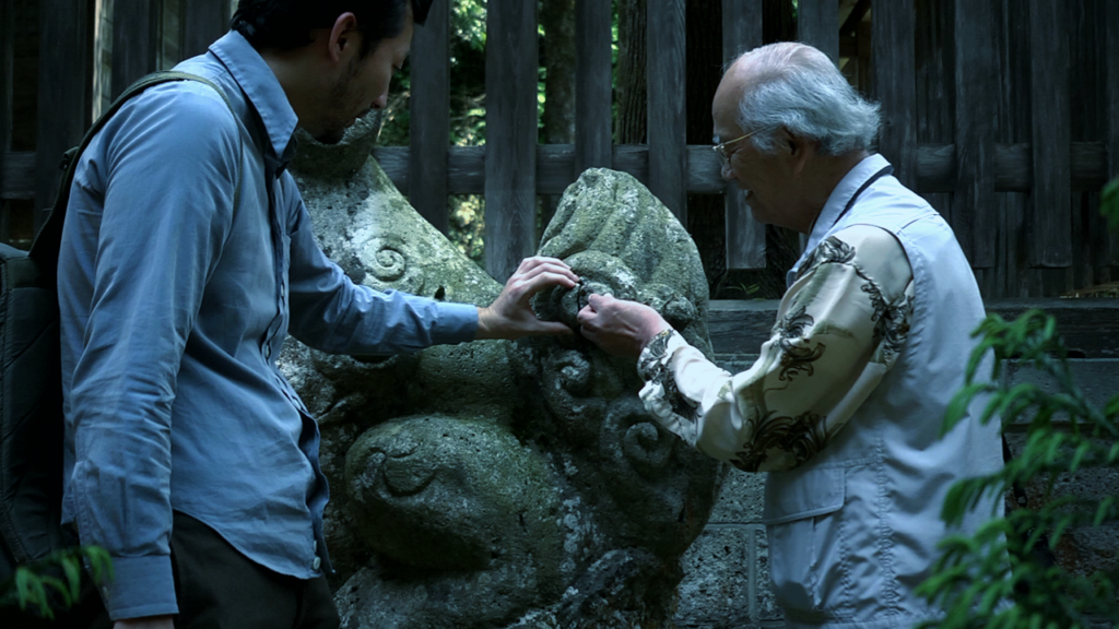 As Sakano began his research in Tsurugi, he visited a local shrine to ask about the origins of the Hōrai Festival. There, he met a folklorist—Hiroji Muranishi—who also appears in Visualising Breath.